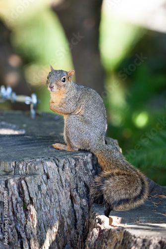 Naklejka premium Close up picture of a beautiful, friendly, curious, wild grey squirrel...