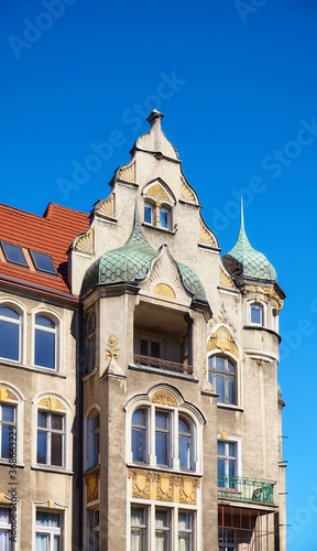 Fototapeta premium Close up picture of an old tenement house on Grunwaldzki Square in Szczecin,...