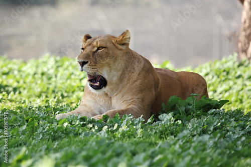 © leonidp, Fototapeta premium Close Up picture of lioness resting in the grass