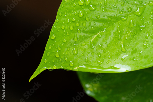 Fototapeta premium close up picture of rain drop on the green plant leaves. nuture concept
