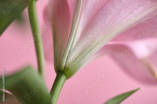 © Sotnikow, Fototapeta premium Close-up pink lily on pink background