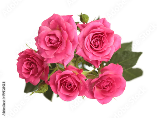 © Liliia, Fototapeta premium Close-up pink, red color Rose flower bud bouquet on white background.