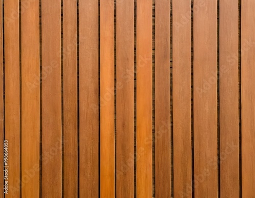Naklejka premium Close-up polished wooden decking showcasing rich grain patterns and warm...
