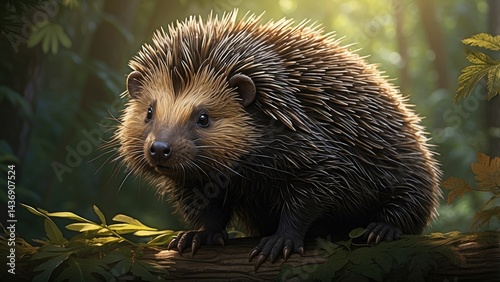 © Rimi, Fototapeta premium "Close-Up Porcupine Face with Spiky Quills – Unique Rodent Animal Image"