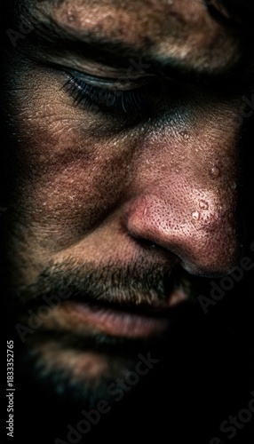 Fototapeta premium Close-Up Portrait Depicting Emotional Burnout with Dramatic Lighting