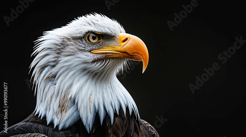 © Arieswanto, Obraz premium Close-up Portrait of a Bald Eagle with Sharp Gaze and Yellow Beak
