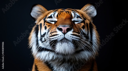 © Matt, Fototapeta premium Close-Up Portrait of a Bengal Tiger with Eyes Closed in Relaxed Expression