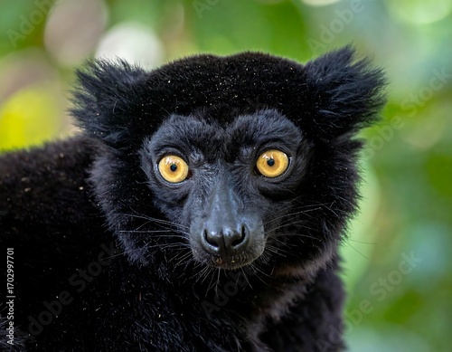 © nama, Naklejka premium Close-up portrait of a black lemur