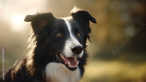 © Hifzhan Graphics, Fototapeta premium Close-up portrait of a Border Collie dog with space for text, background image, AI generated