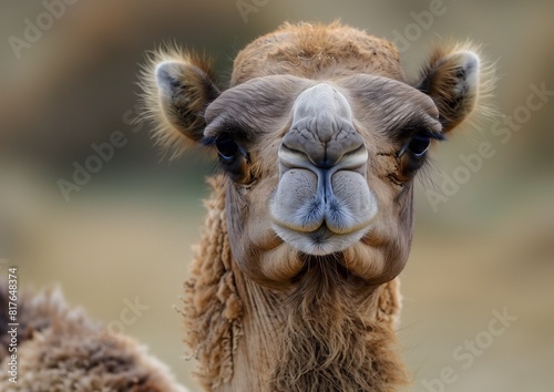 Obraz premium Close-up Portrait of a Camel with Soft Background in Natural Habitat