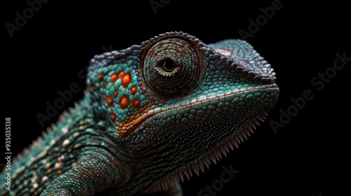 © BerkahStock, Fototapeta premium Close-Up Portrait of a Chameleon with Vivid Colors