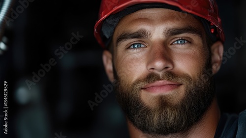 © BROPRADANA, Fototapeta premium Close-up portrait of a construction worker. Focused on the face and upper body of a confident, experienced worker