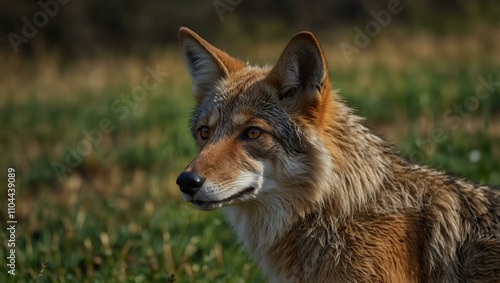 © claudunia, Fototapeta premium Close-up portrait of a coyote relishing serenity in the grass.