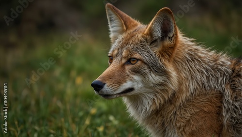 © claudunia, Fototapeta premium Close-up portrait of a coyote relishing serenity in the grass.