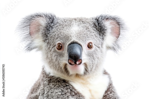 © Dzikrul Husnani, Fototapeta premium Close-up Portrait of a Cute Koala Bear on White Background