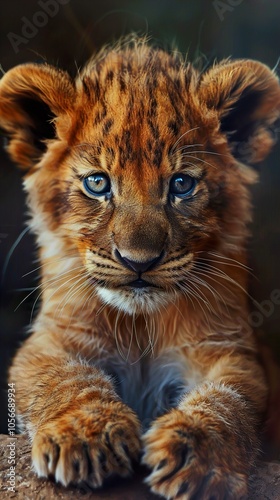 Fototapeta premium Close-up Portrait of a Cute Lion Cub