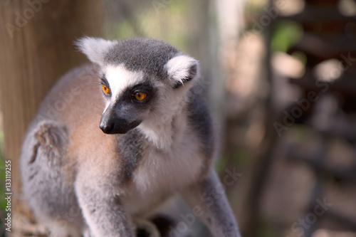 Obraz premium Close up portrait of a cute ring tailed lemur on the blurred background. Copy...