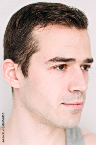 © dashamuller, Obraz premium Close up portrait of a handsome young man on white