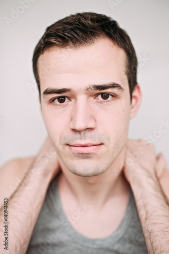 © dashamuller, Obraz premium Close up portrait of a handsome young man on white