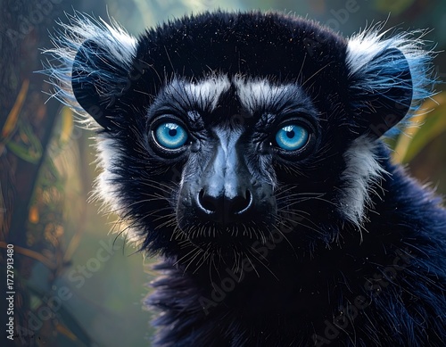 Naklejka premium Close-up portrait of a lemur with striking blue eyes