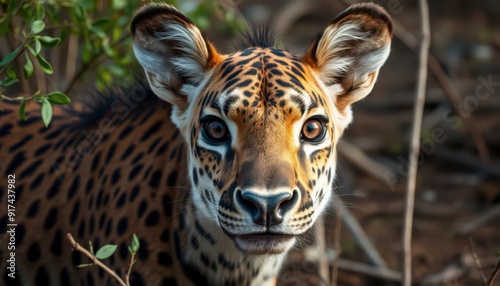 Naklejka premium Close Up Portrait of a Leopard Cub in the Wild.