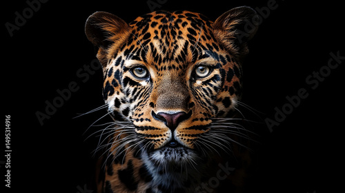 © Parol, Obraz premium Close up portrait of a leopard with striking eyes and detailed fur on a black background image