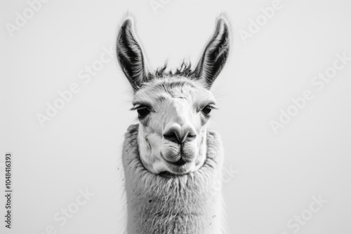 Obraz premium Close-up Portrait of a Llama in Black and White Against a Minimalist...