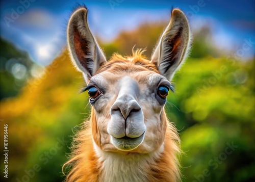 © Danicha, Obraz premium Close-Up Portrait of a Llama with Soft Fur and Expressive Eyes Against a Natural Background