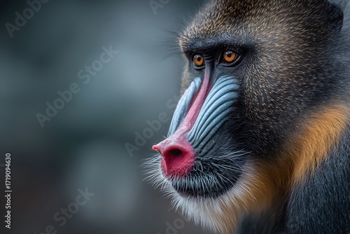 © Disa, Fototapeta premium Close-up Portrait of a Majestic Baboon with Striking Facial Features and Expressive Eyes