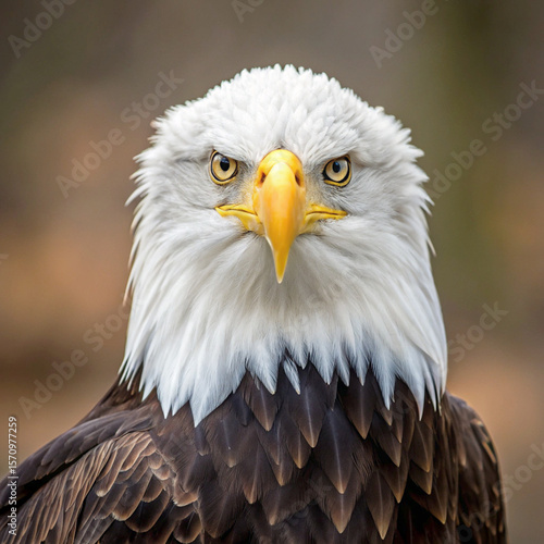 Fototapeta premium Close up portrait of a majestic bald eagle with piercing yellow eyes and a...