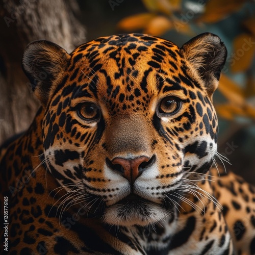 © tanawatbig, Obraz premium Close-Up Portrait of a Majestic Jaguar in Natural Habitat