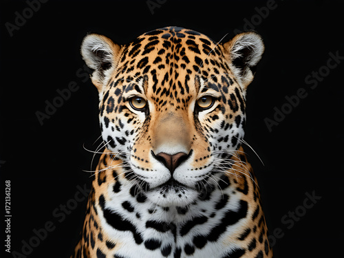 © MD. ABU HAMZA, Obraz premium Close up portrait of a majestic jaguar with striking spots against a dark background