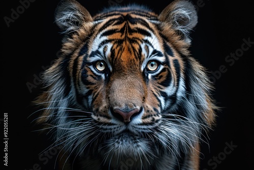 © vanzerim, Naklejka premium Close-Up Portrait of a Majestic Tiger