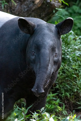 Fototapeta premium Close up portrait of a Malayan tapir (Tapirus indicus). Malayan Tapir that is the largest tapir of Asia.
