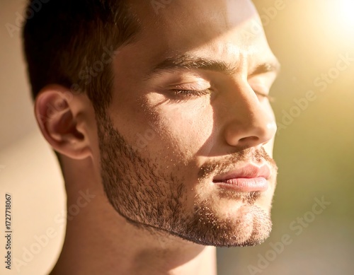 Fototapeta premium Close-up portrait of a man, sunlit