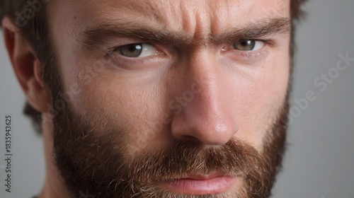 Obraz premium Close up portrait of a man with a serious expression furrowed brows and a beard