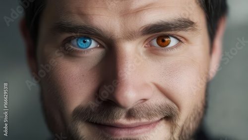 © Musthofa, Obraz premium Close-up portrait of a man with different colored eyes