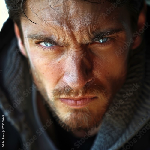 Obraz premium Close Up Portrait of a Man with Intense Expression