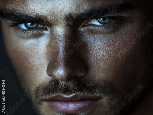 Fototapeta premium close-up portrait of a man with striking blue eyes and strong features