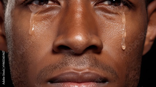 Fototapeta premium Close-up portrait of a person weeping with visible tears.