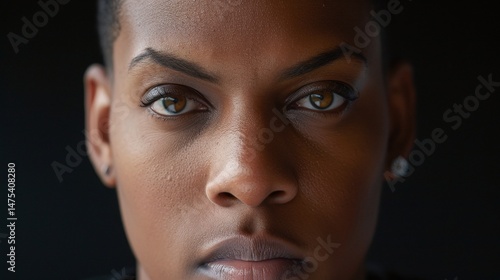 Obraz premium Close-up portrait of a person with a serious expression.