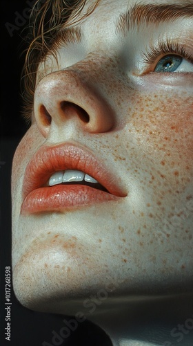 Fototapeta premium Close-Up Portrait of a Person with Freckles