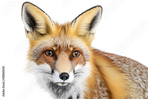 Fototapeta premium Close-up portrait of a red fox with a white background looking at the camera.