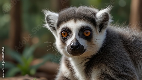 © titik, Naklejka premium Close-up portrait of a ring-tailed lemur.
