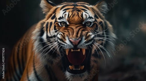 © Aliando, Fototapeta premium Close-up Portrait of a Roaring Tiger