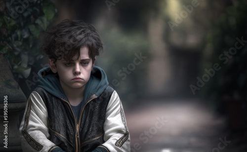 © Karlos Garciapons, Fototapeta premium close-up portrait of a sad child. generative ai. illustration. concept depression and bulling in adolescence.