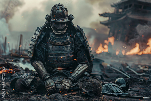 © Tetiana, Fototapeta premium Close up portrait of a samurai warrior with a determined look in his eyes generative ai