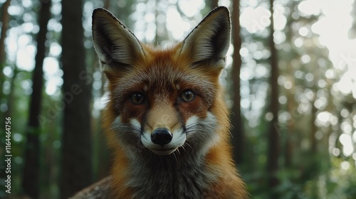 © AbstractAI, Obraz premium Close up Portrait of a Serious Fox in a Summer Forest Setting Surrounded by Trees and Soft Natural Light