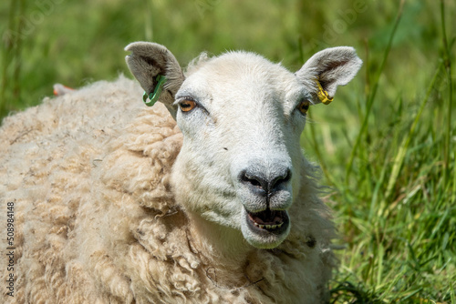 © Penny, Naklejka premium close up portrait of a sheep pulling a funny face