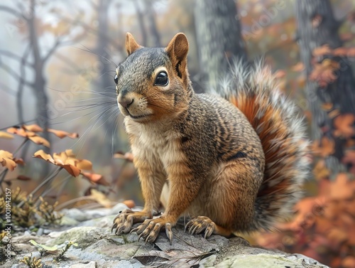 Fototapeta premium Close-up Portrait of a Squirrel in the Autumn Forest